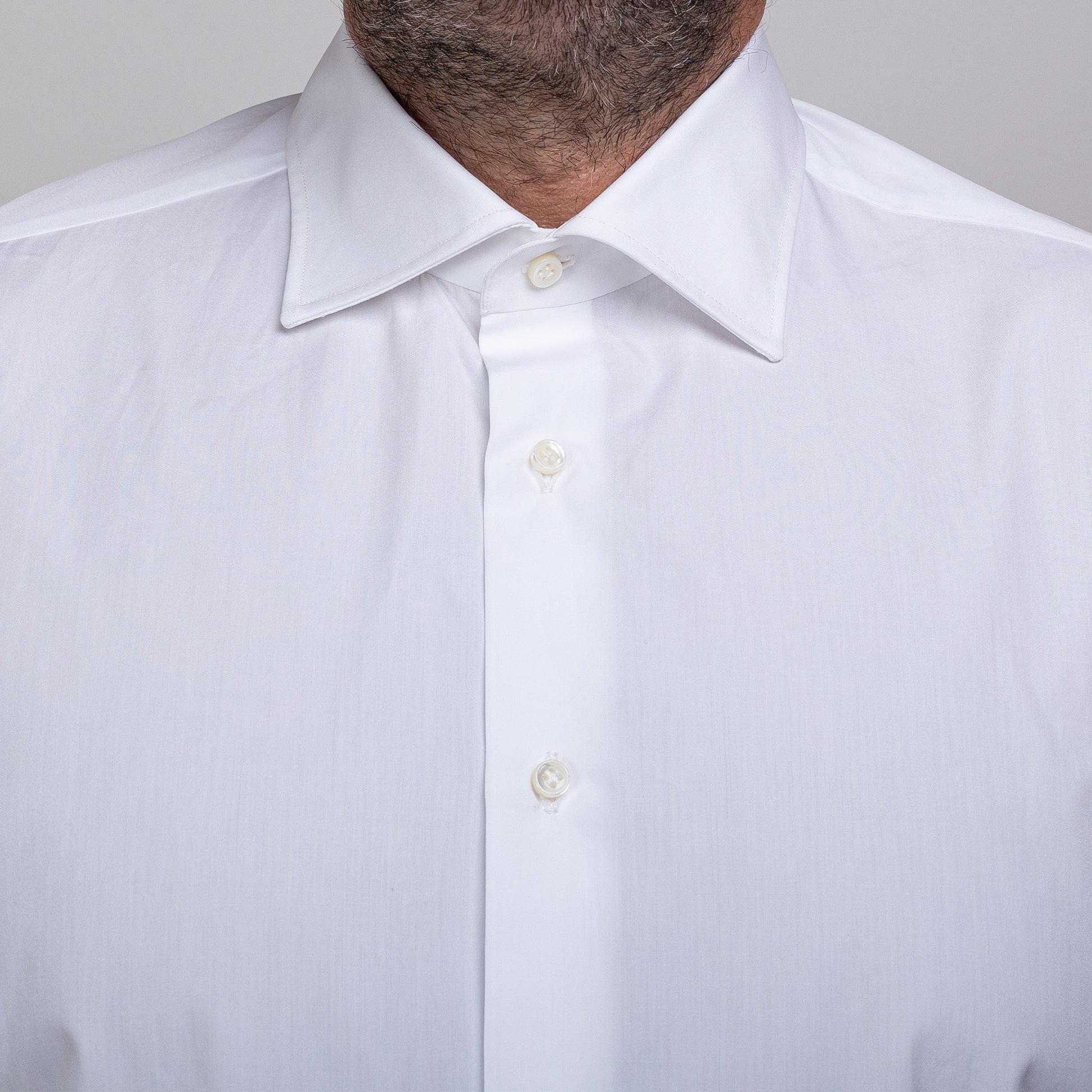 Il massimo dell’artigianalità: asole, bottoni, travettature e cuciture eseguite interamente a mano dai nostri sarti esperti. Ogni punto racconta una storia di eccellenza, rendendo la camicia un pezzo unico, ineguagliabile per comfort e raffinatezza.